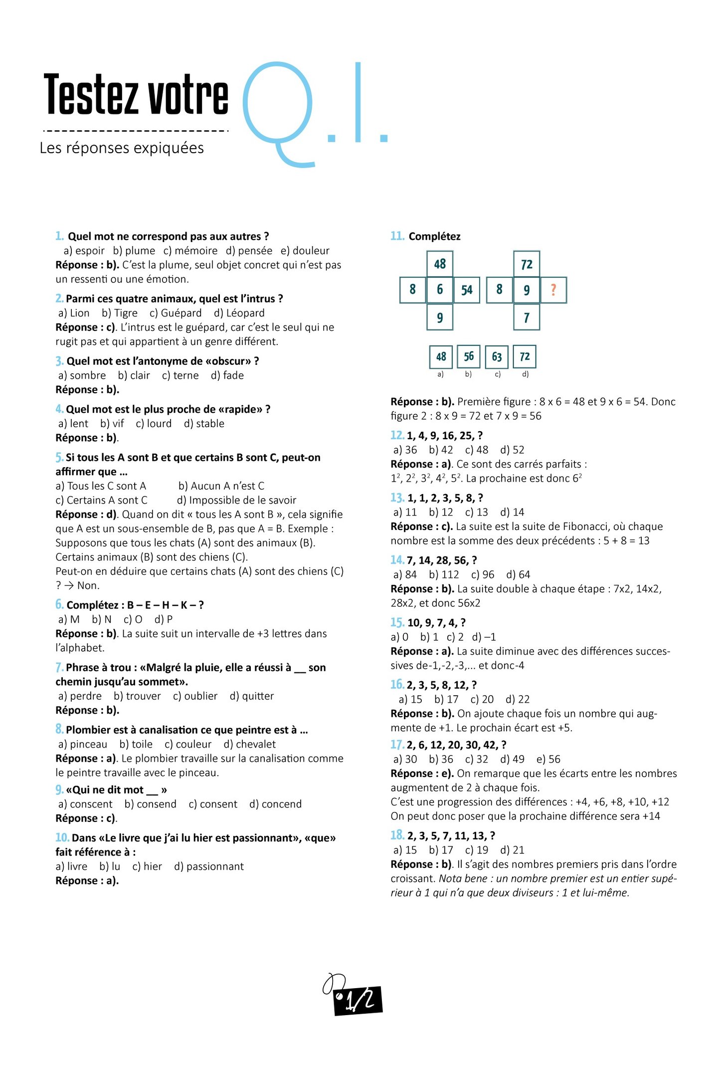 Réponses sudokus